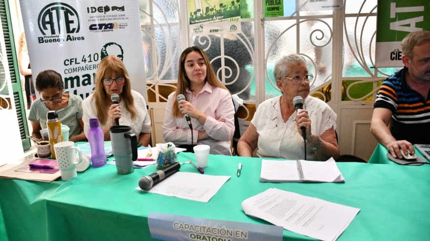 El acto inaugural de la muestra estuvo a cargo de la directora del CFP, Silvina Chávez, el regente de la entidad, Fernando Ferro, mientras que la comitiva de ATE provincia estuvo encabezada por la secretaria Adjunta, Eliana Aguirre y el director del IDEP, Ezequiel Álvarez.
